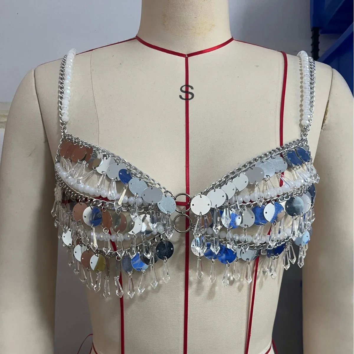Multilayer Metal Sequins Tassel Harness Necklace Bra Chain Women Jewelry Metal Alloy Body Jewelry Women Sequin Body Chains